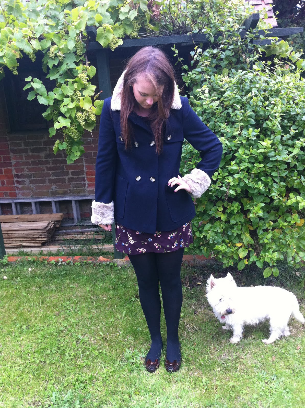 Yes i bought a coat, in August. Talk about being early to the party. However, i was thinking economically with discount and all, plus i do really love it. Navy & fur, yes please! I have already accumulated quite a few long woollen coats over the past few years, including my trusty pillar box red duffle, so its rather nice to have a short-ish coat.