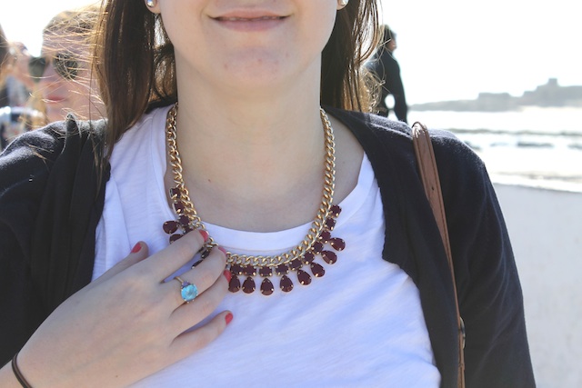 Necklace - Accessorize ∙ Cardigan - Laura Ashley ∙ T-shirt - J.Crew ∙ Trousers - New Look