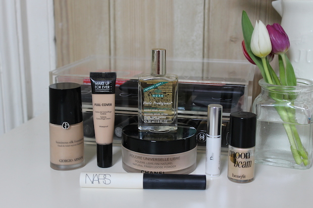 Luminous Silk Foundation - Armani ∙ Full Cover Concealer - MUF ∙ Dry Oil - Nuxe ∙ Face Powder - Chanel ∙ Eyelash Primer - Dior ∙ Moon Beam - Benefit ∙ Eyeshadow Primer - Nars