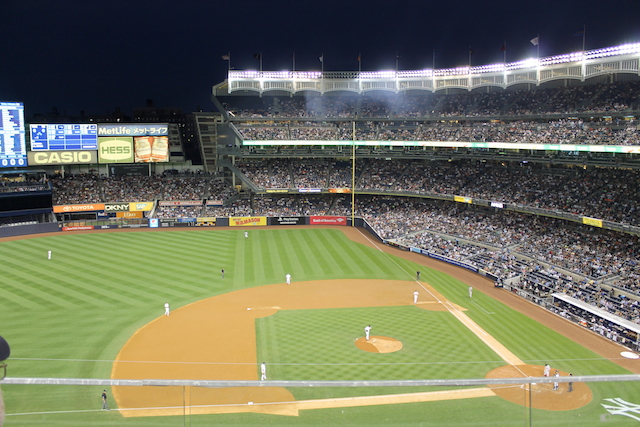 That evening we took the subway to the Bronx to catch a baseball game. I'm really the sporting kind but after much persuasion from my dad (and the reassurance and promise of good food from Sophie), I soon became a baseball convert and a firm fan of the Yankees (hat and all).