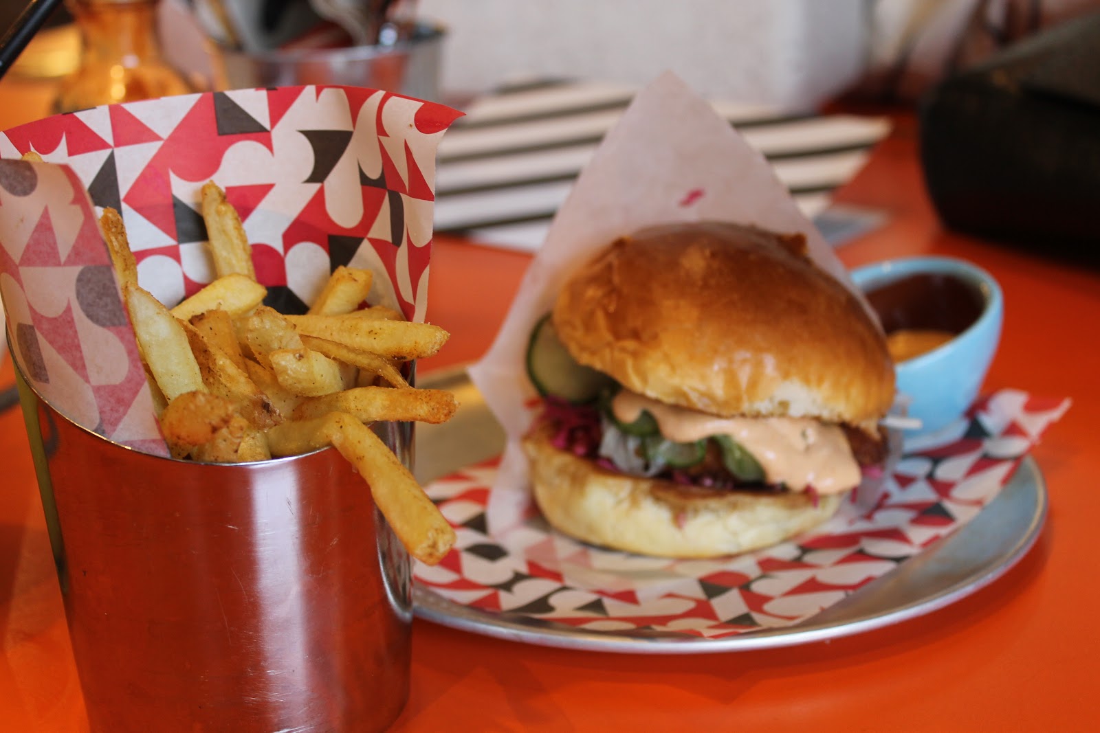 Sighting no queue (hurrah!) we were seated pretty speedily and threw ourselves into menu, coming up for air to admire the modern interior and pitching up to the self service with eager excitement. Self service basically equates to an iPad and card machine, with a real life human standing behind to offer a glass for the self-service drinks. Bit weird, bit cool. Nightmare if you were a) old b) in a large group like the old lady next to us. Perfect however if you're in a gaggle of girls and guys and want to pay separately, without the annoying drag of having to wait ages for the bill after. Kudos!