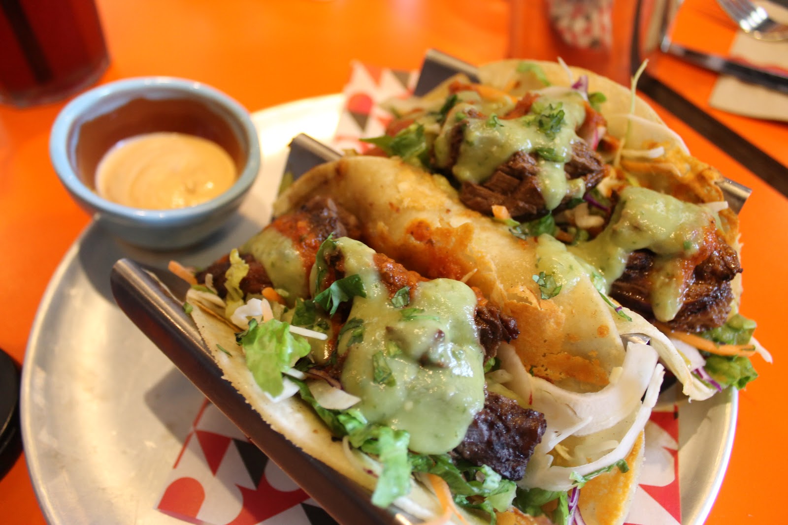 Serving up a treat of frozen margaritas, I played it cool and piped for a virgin bottomless Hibiscus water. A refreshing blend with a hint of tropical, it sweetened the deal with the promise of free re-fills. After much debating, I finally set my taste buds on the steak tacos.