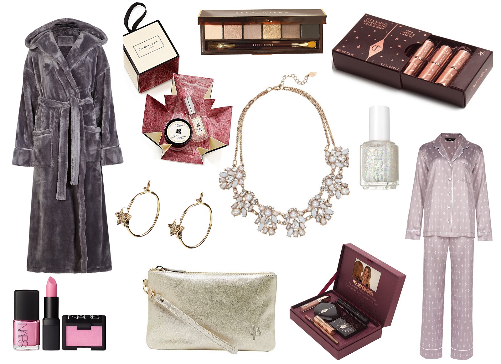 Luxury Dressing Gown - M&S ∙ Christmas Ornament - Jo Malone ∙ Eye Shadow Palette - Bobbi Brown ∙ Mini Lipstick Set - Charlotte Tilbury ∙ Star Hoop Earrings - Accessorize ∙ Necklace - Accessorize ∙ Essie Polish - Boots ∙ Pink Make-Up Set - Nars ∙ Purse iPhone Charger - John Lewis ∙ Super Model Set - Charlotte Tilbury ∙ Silk Pjs - Marks and Spencers