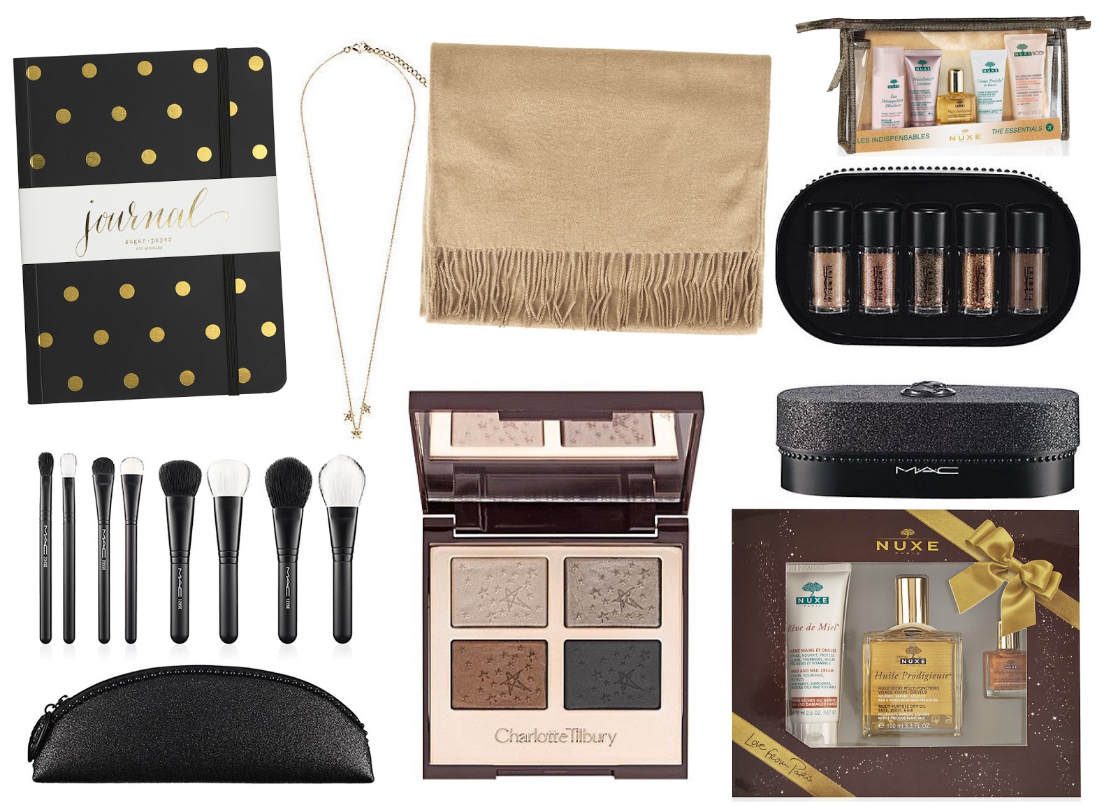 Journal - Sugar Paper ∙ Star Necklace - John Lewis ∙ Brushed Scarf - Topshop ∙ Travel Set - Nuxe ∙ Pigment Set - MAC ∙ Brush Kit - MAC ∙ Eye Shadow Palette - Charlotte Tilbury ∙ Winter Gift Set - Nuxe