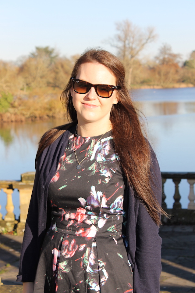 Floral Dress - Warehouse ∙ Sunglasses - Ray Ban ∙ Navy Knit - Gap ∙ Necklace - Kate Spade∙ Bag - Kate Spade