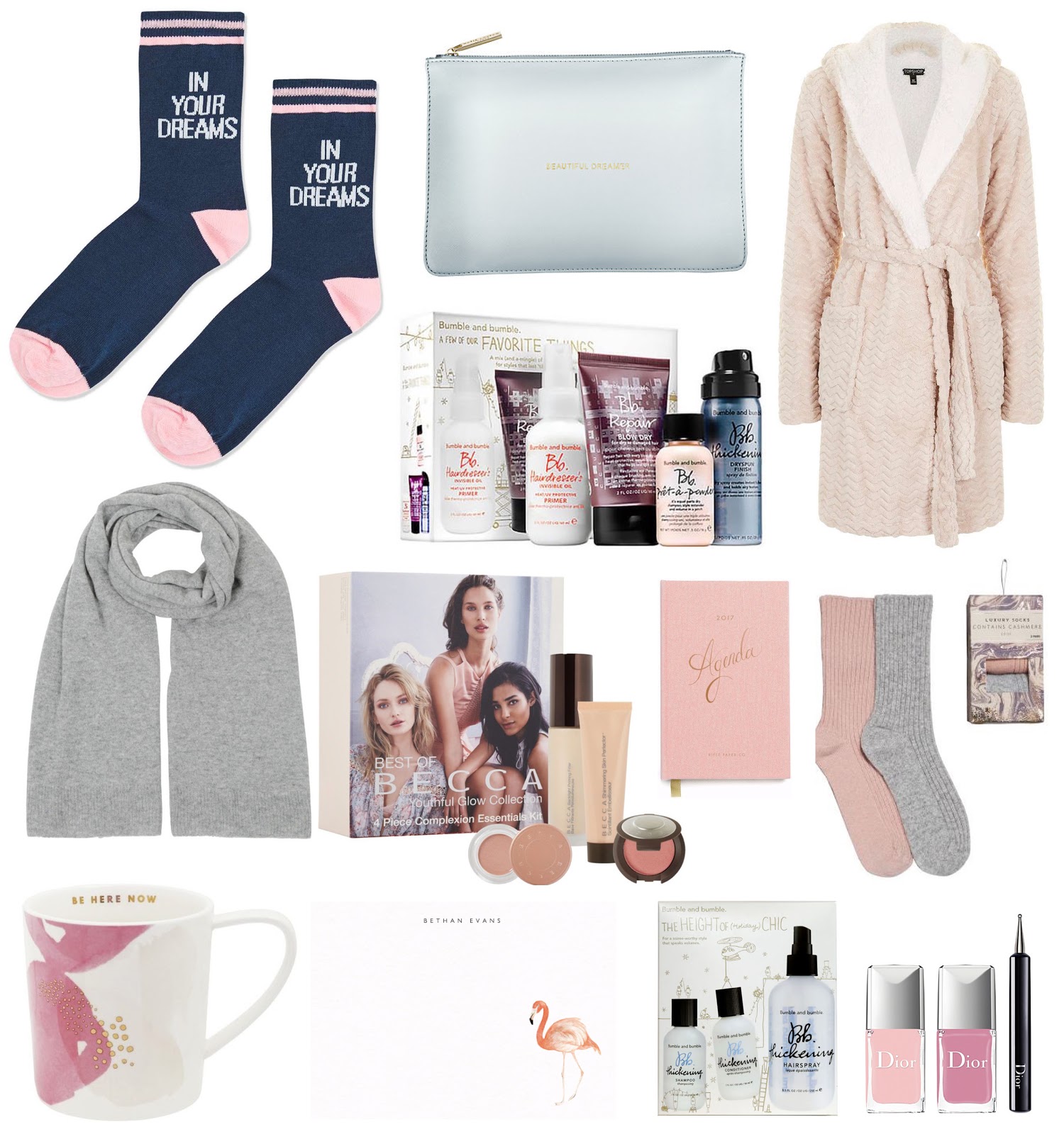 Mug - Kikki K ∙ Pink flamingo personalised note cards - Papier ∙ Thickening hair set - Bumble Bumble ∙ Nail art kit - Dior