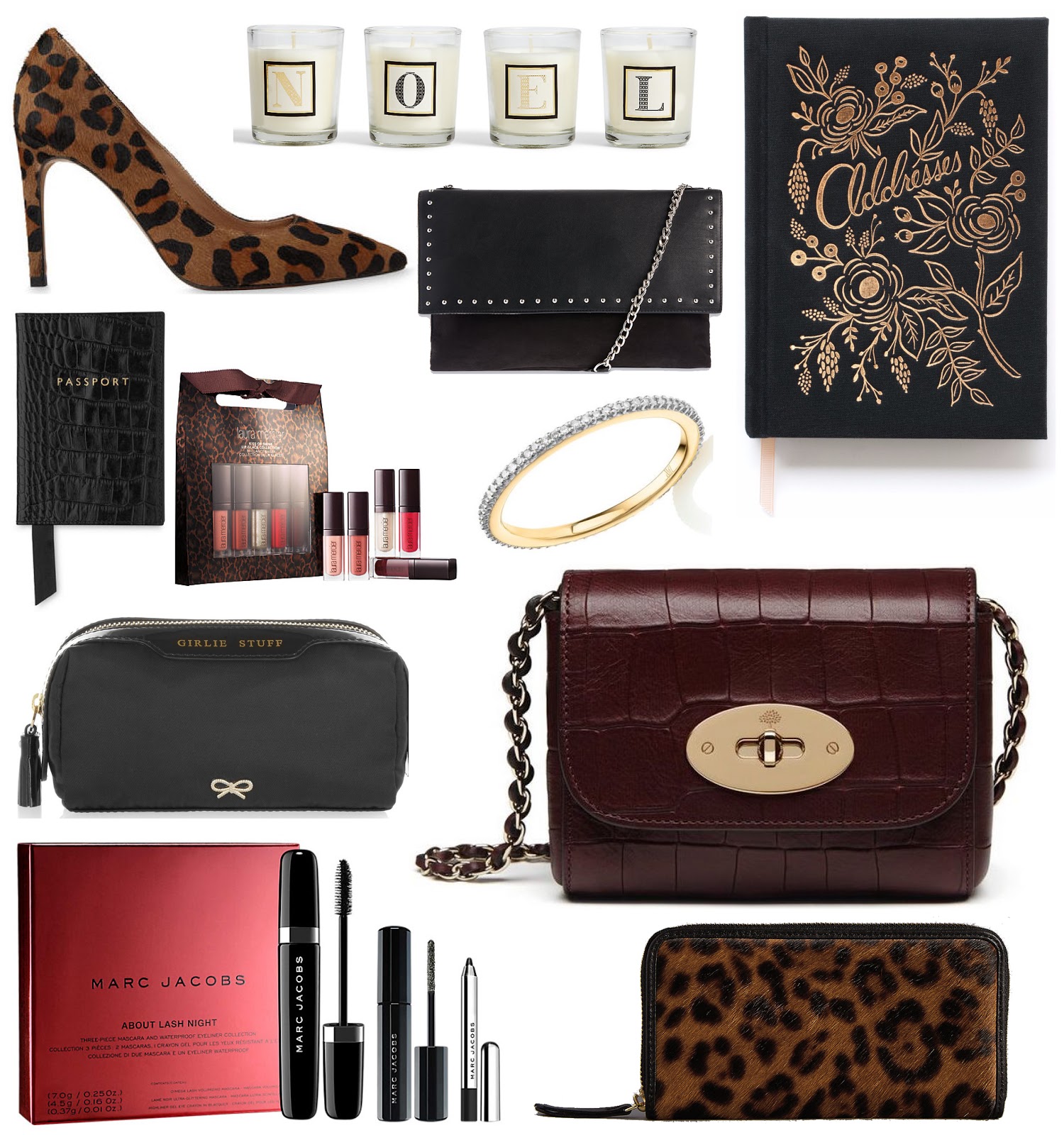 Leopard print heels - Whistles ∙ Candle set - M&S ∙ Address book - Rifle Paper Co ∙ Stud handbag - M&S ∙